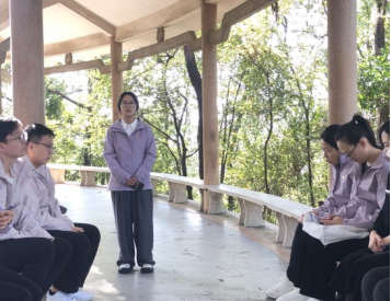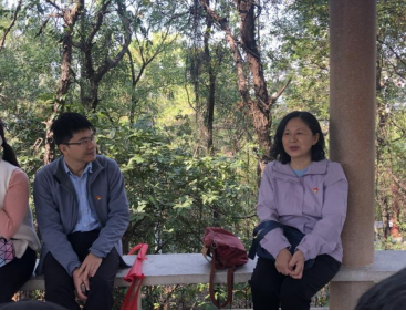 在榴花公园的吟风亭内,党支部书记颜雄以“榴花忠魂照初心 ,育人为国担使命”为题,深情并茂地讲授了一堂微党课。她结合全会精神,细致解读了东江纵队依靠群众力量创建根据地的历史篇章。她指出,高校教育工作者不仅是红色故事的传播者,更是强国人才的培育者。先辈们守护家园,我们培育英才,均为家国肩负重任。我们要带领学生到此,深刻感悟英雄精神,将“民族魂”融入育人过程,培养能够担当时代重任的新一代。