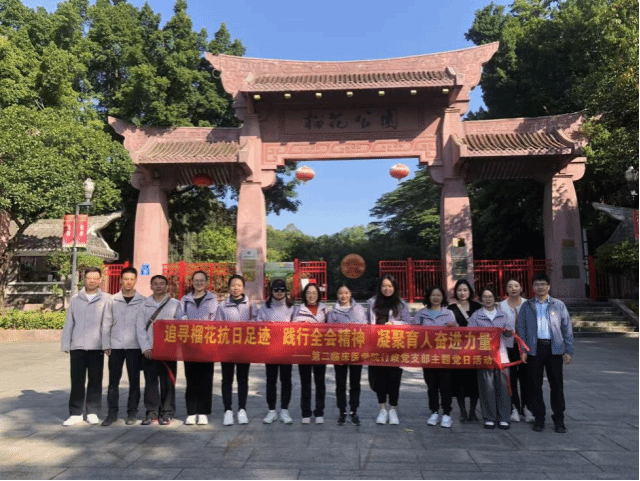 2025年11月25日,第二临床医学院行政党支部联合教学与医疗服务党支部走进东莞榴花公园,开展“追寻榴花抗日足迹,践行全会精神,凝聚育人奋进力量”主题党日活动。党员们以“东江纵队抗日遗址”为红色课堂,将全会精神学习与革命历史传承深度融合,在沉浸式体验中筑牢育人初心。
