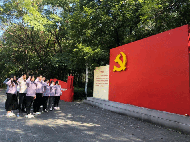 第三站来到榴花抗日纪念亭,亭内镌刻的抗日英烈名录与事迹,让现场气氛愈发庄重。党员们静静伫立,认真研读史料,通过默哀致敬的方式,表达对革命先辈的深切缅怀与崇高敬意。