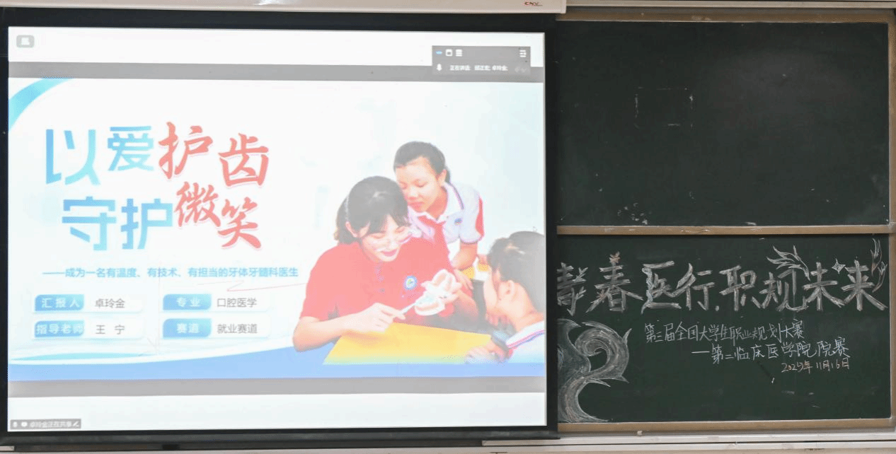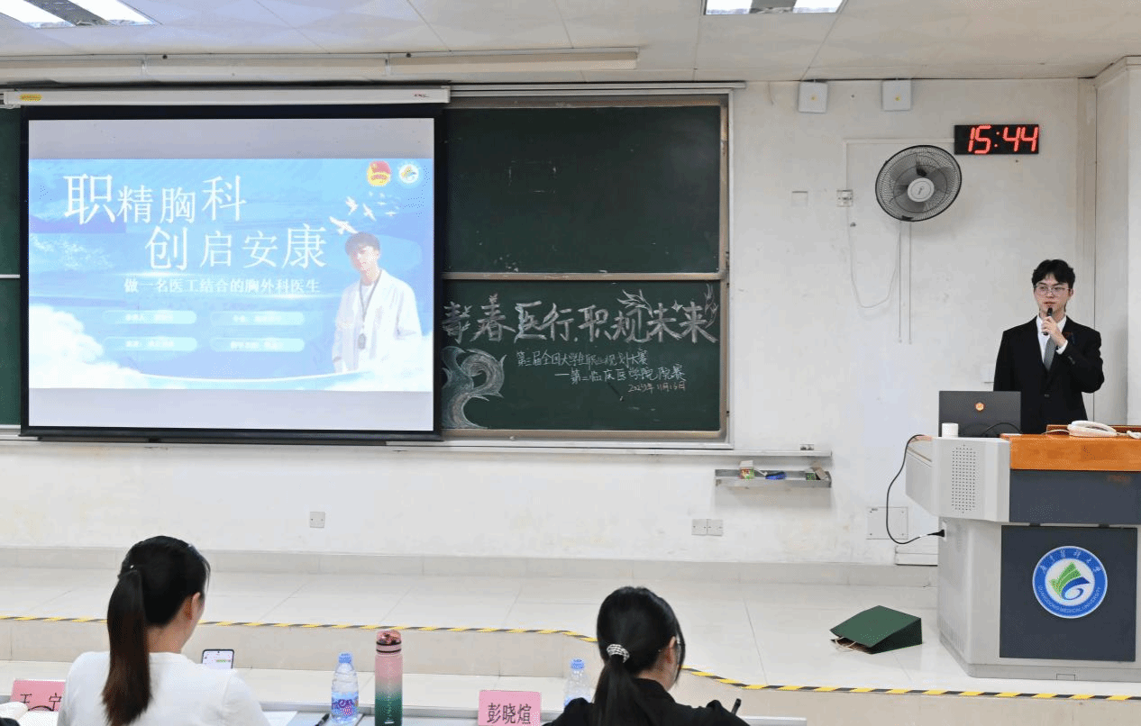 为全面落实立德树人根本任务,引导学生科学合理地规划学业与职业发展,提升就业竞争力,2025年11月16日下午,“青春医行,职规未来”第二临床医学院职业规划大赛在教室A2-5成功举行。本次大赛吸引了全院各年级共2746名学生参加,经评委初审,共推选出15名优秀选手进入决赛,选手们同台竞技,共同描绘未来的职业蓝图。