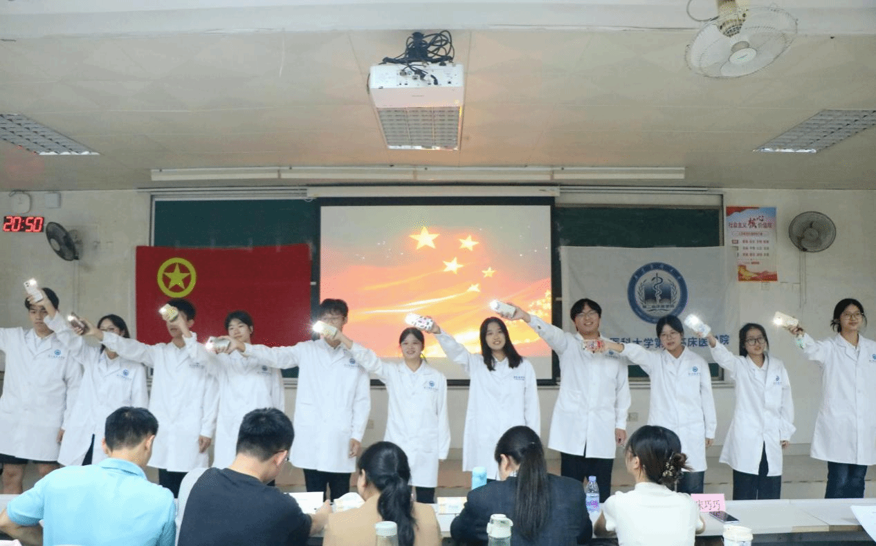 第四组学员带来的情景剧与朗诵的结合。从南湖红船星火追溯到医者逆行,展现红色信仰与青春担当。朗诵与情景的精彩演绎,不仅将医学知识展现得淋漓尽致,也让红色精神在医学青春征程中熠熠生辉。