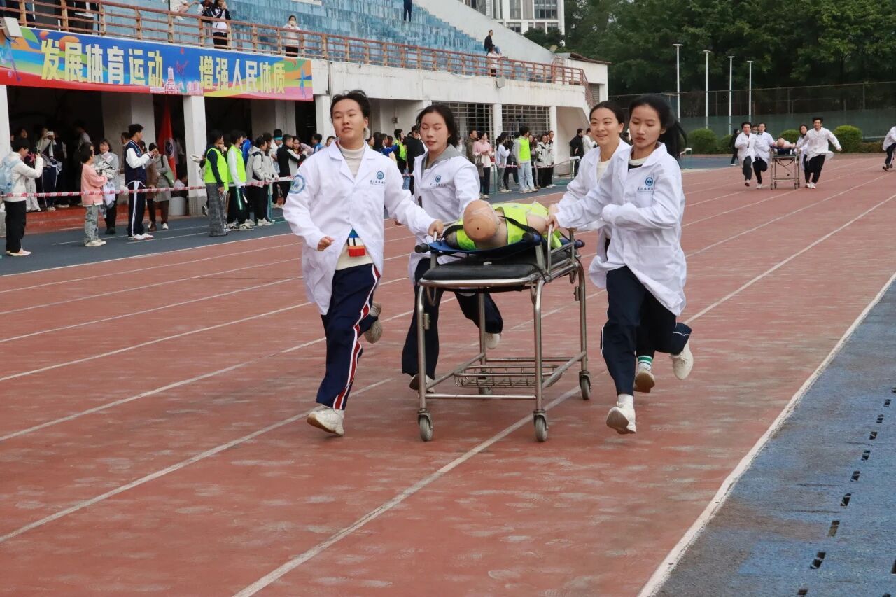 医者,无时无刻不在与时间赛跑,同学们手中的担架承载的是生的希望。争分夺秒的意义,从来都不只局限于赛场。