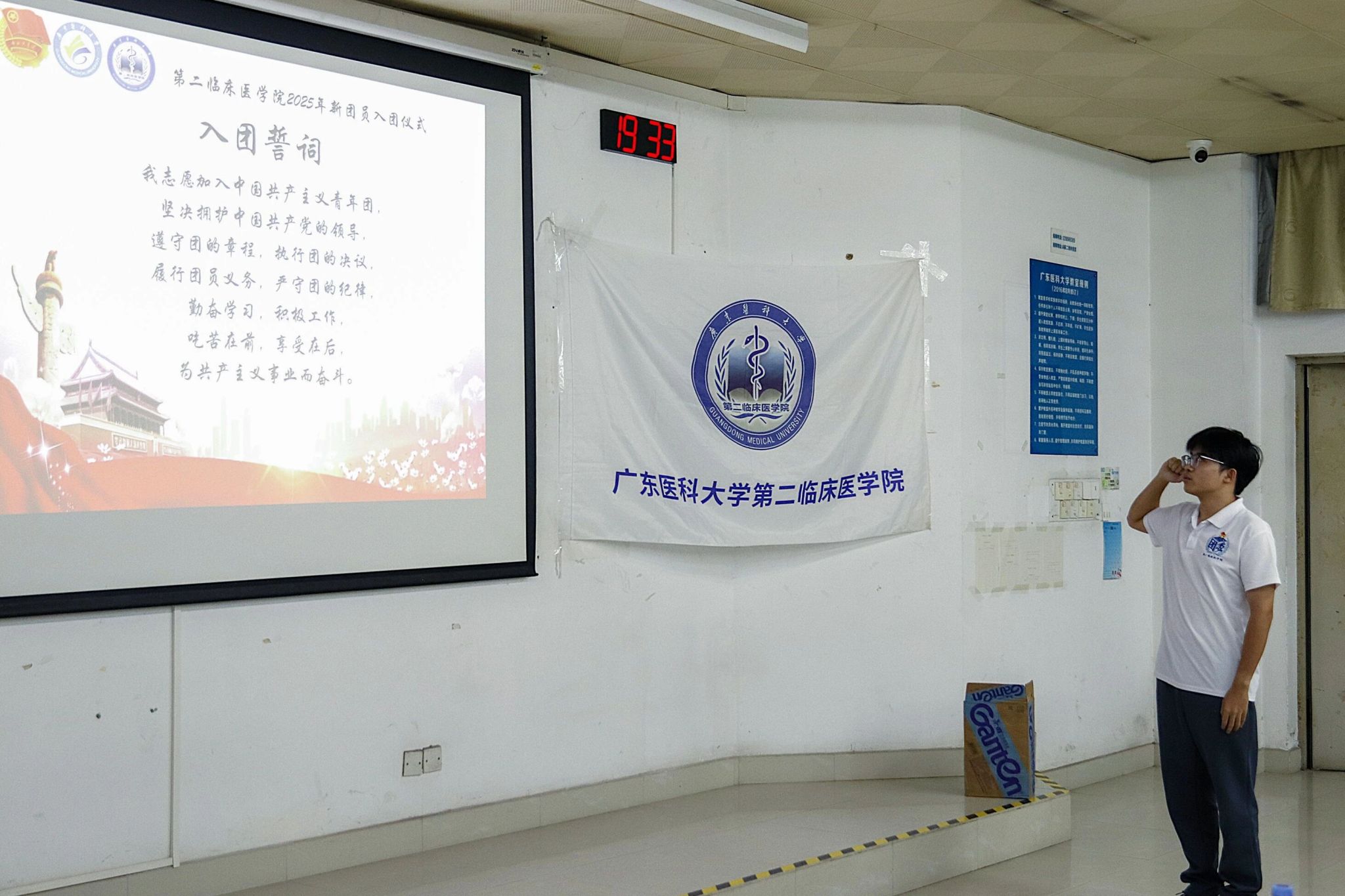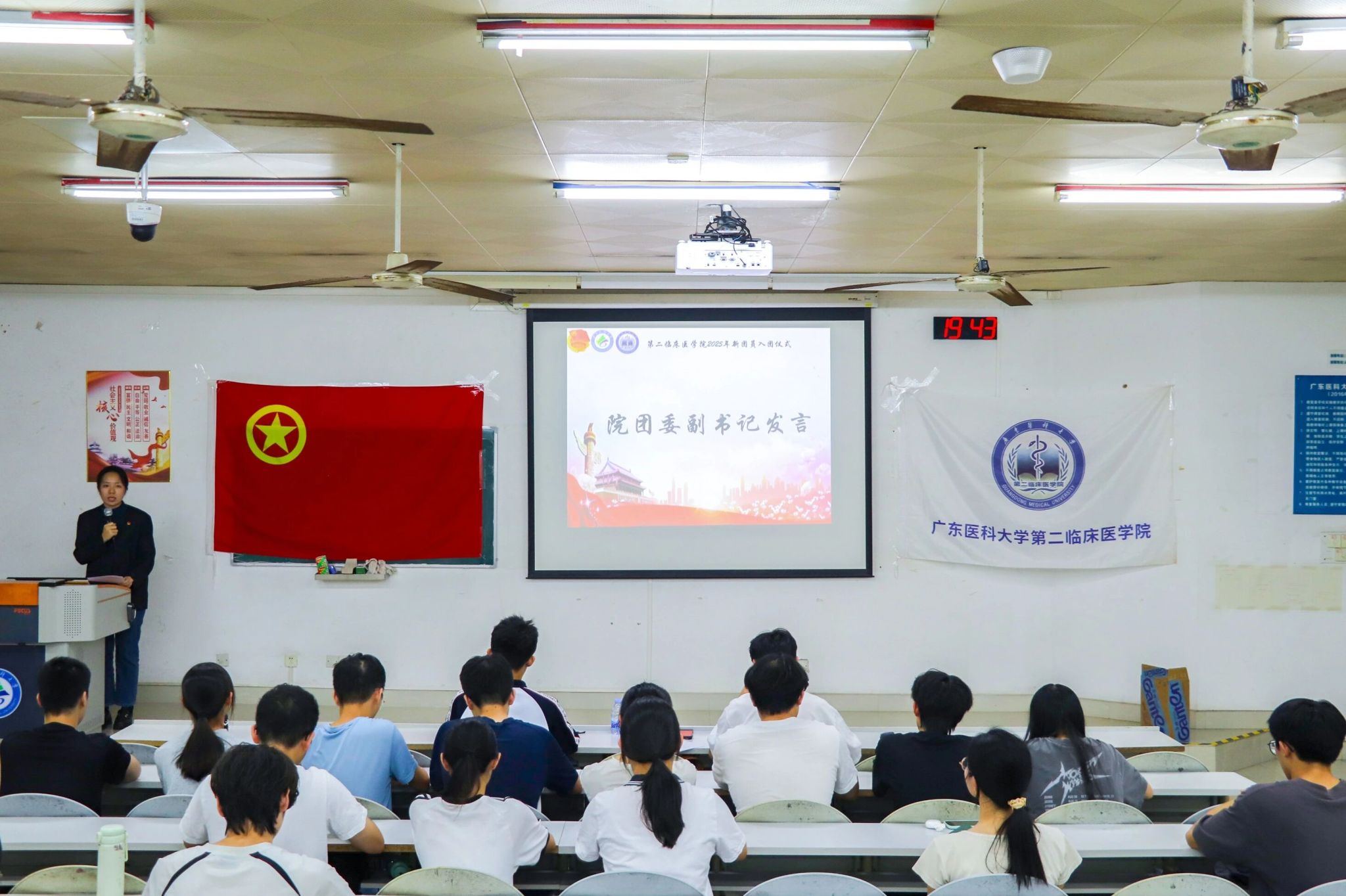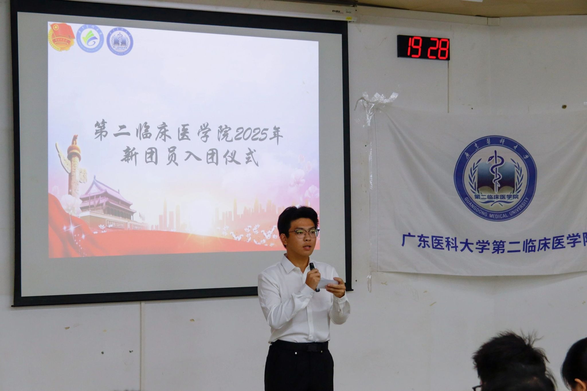 为加强第二临床医学院共青团队伍的建设,激发共青团员的光荣感与使命感,10月26日晚七点半,由第二临床医学院主办的2025年下半年新团员入团仪式在教学楼C2-1庄严举行。莅临现场的嘉宾有:学院团委副书记、24级辅导员李明娴老师,优秀团员代表杨金鑫同学以及所有新团员。