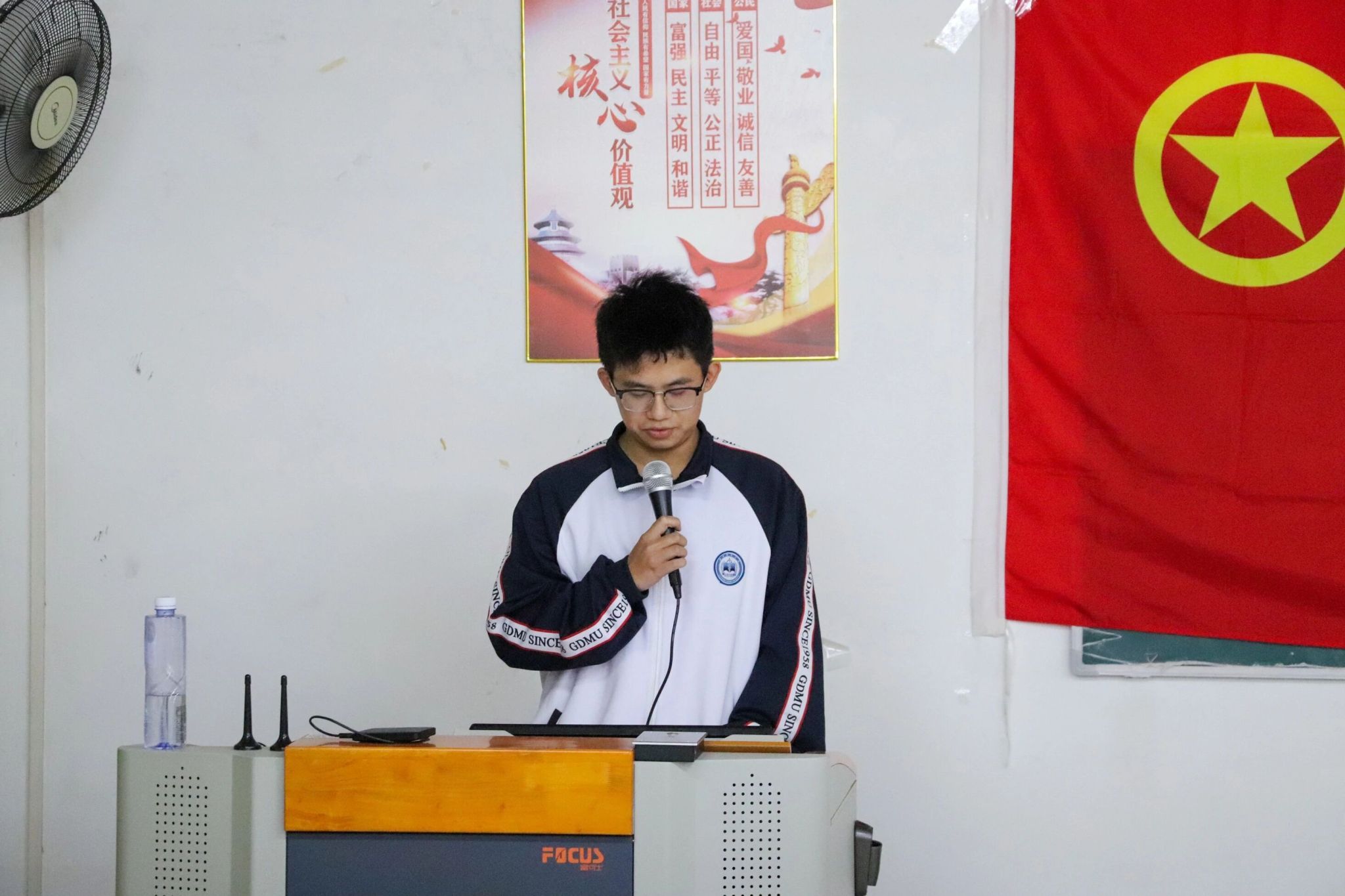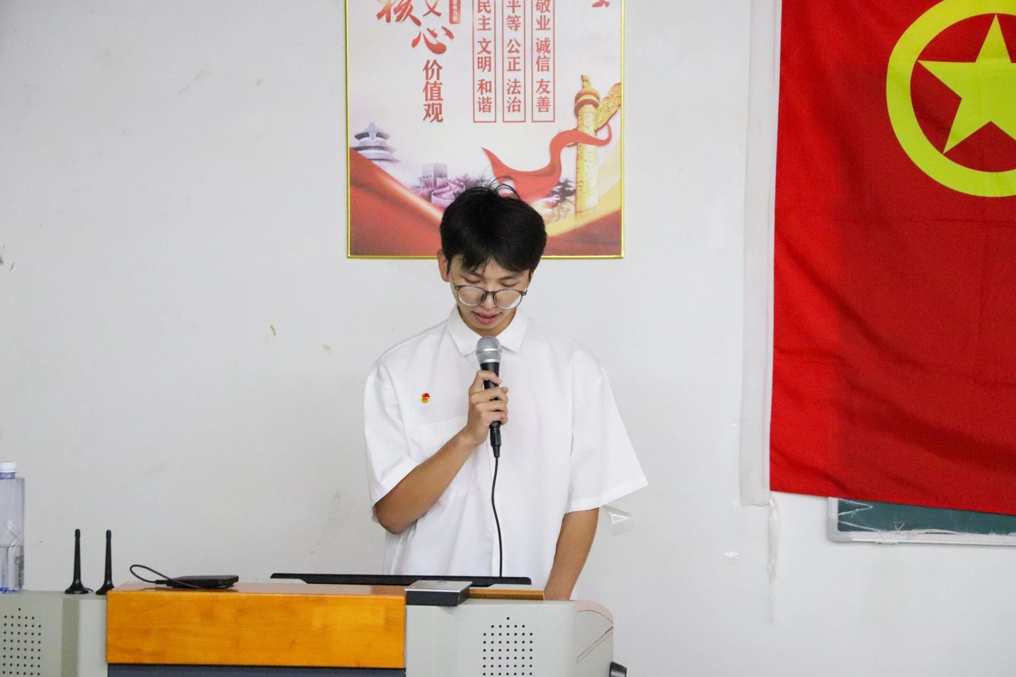 新团员真挚的发言,让我们看到青春的赤诚与向往。随后,老团员代表23级口腔医学杨金鑫同学结合自身学生工作及实践经历分享成长感悟并对新团员表达了殷切期望,他表示作为一名共青团员,要永远保持共青团员的光荣称号,让团徽在胸前永远闪光。