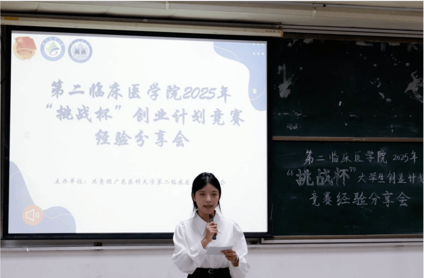 为助力同学们突破竞赛信息壁垒,以往届参赛者的获奖经验作为明灯指引前进方向,2025年10月28日晚19:30,广东医科大学第二临床医学院2025年“挑战杯”大学生创业计划竞赛经验分享会在教学楼A3-3隆重举行。出席本次活动的领导有:第二临床医学院团委副书记王宁老师,团委指导老师、辅导员宋巧巧老师以及2025级辅导员朱朱老师。