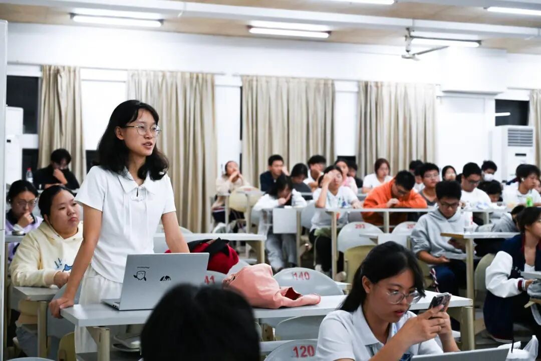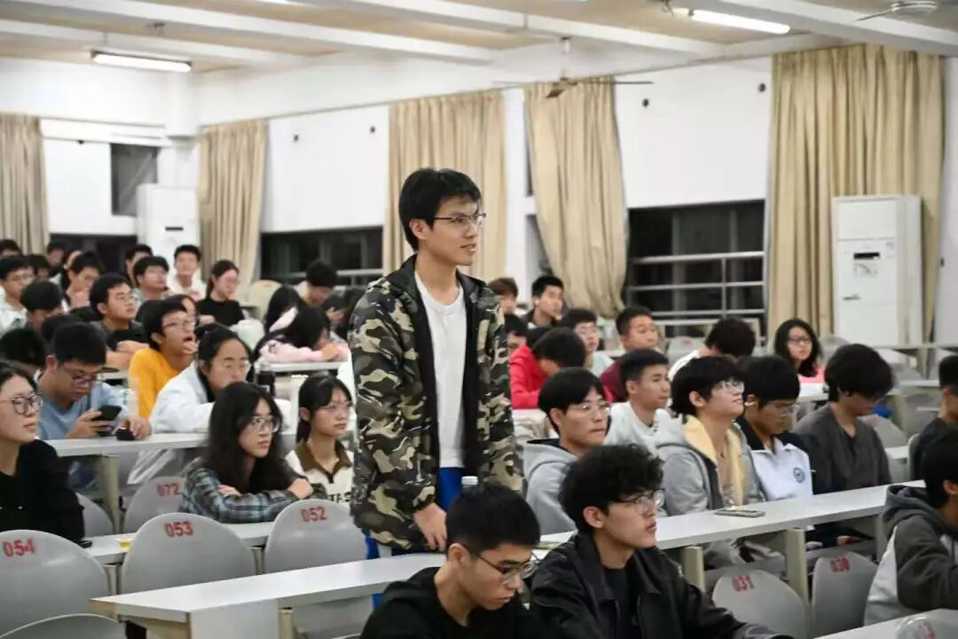 王老师还借助现场提问的方式,了解到入团积极分子们申请加入共青团的缘由,并向他们提出“要以服务他人为宗旨来严格要求自己”。同时,他还以入团积极分子身边表现优异的学长学姐为例,为同学们明确奋斗方向,总结优秀团员的成长轨迹,期望同学们以实际行动追逐共产主义目标,以青春担当使命,以奋斗践行初心。