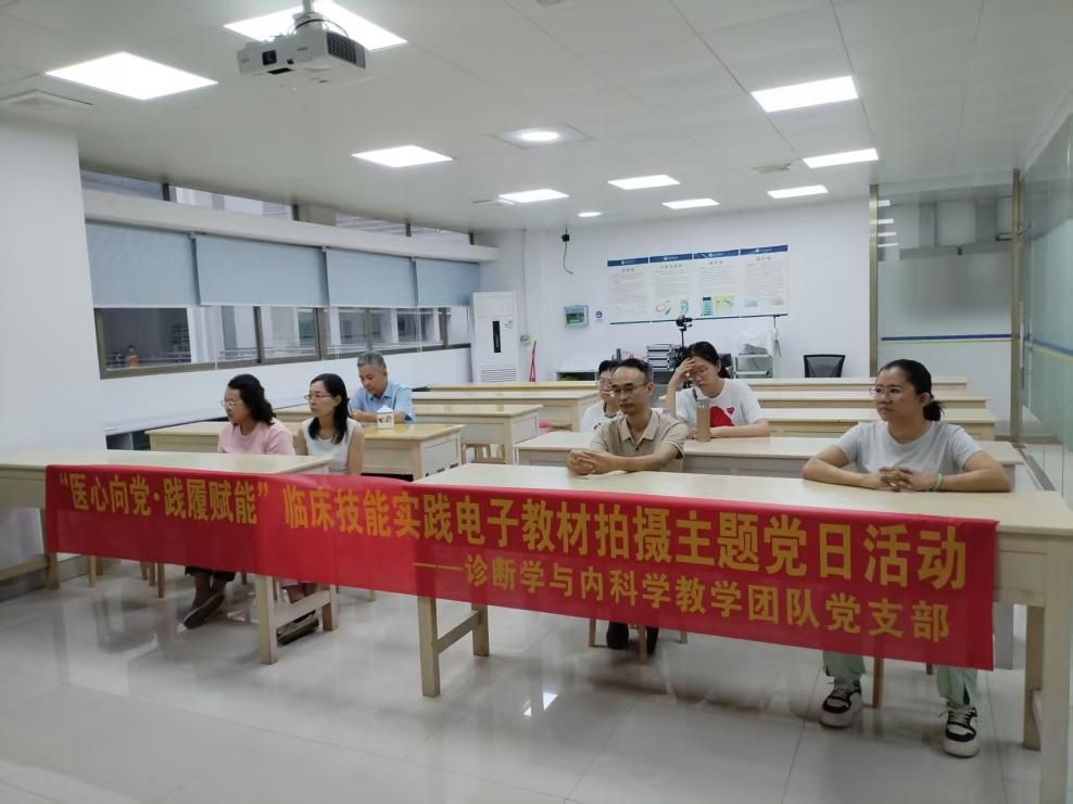 2025年10月28日,诊断学与内科学教学团队党支部开展“医心向党·践履赋能”临床技能实践电子教材拍摄主题党日活动,将党性教育与临床技能实践深度融合,支部党员、诊断学与内科学教研室骨干教师、23级临床医学专业Sp学生及拍摄团队参与活动,以党建引领打造高质量临床技能实践电子教材。