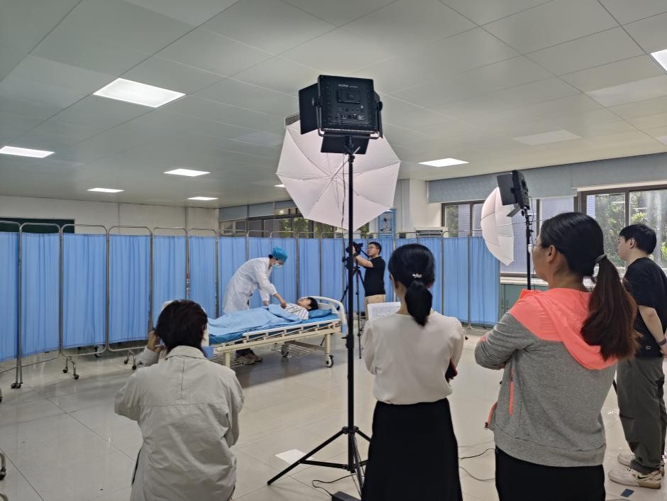 核心拍摄环节以“党员示范+分组协作”模式推进,历时2天。党组织委员黄怡老师担任“操作示范员”,在党员责任岗上严格按照标准化流程完成临床技能核心操作拍摄,同时讲解操作风险点与人文关怀要点,践行医者职业精神。参与人员按“党员+青年骨干教师”分组,各小组由党员组长统筹拍摄分工,牵头开展操作规范讨论,针对操作顺序、手法标准等细节研讨优化,确保教材内容零误差,充分发挥党员“传帮带”作用。拍摄间隙,临时党小组对各小组提交的拍摄片段进行现场评议,重点核查操作规范性与流程完整性,对示范到位的小组予以表扬,对存在问题的小组由党员带头整改,强化质量与责任意识。