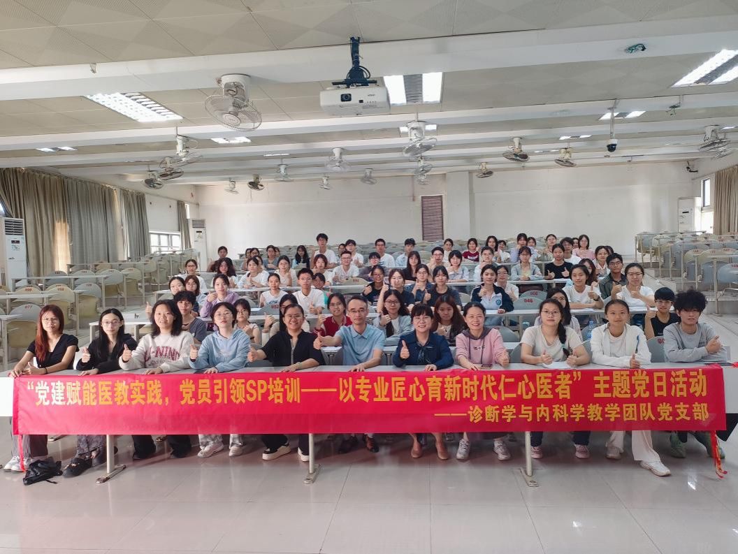 11月1日,诊断学与内科学教学团队党支部紧扣医教融合发展需求,以第10期标准化病人(SP)培训为抓手,开展“党建赋能医教实践,党员引领SP培训”主题党日活动。60名待培训SP参与本次覆盖心血管、消化等六大系统常见病的系统化培训,党建与医学教学实践的深度融合,为临床教学实践载体建设注入红色动能。