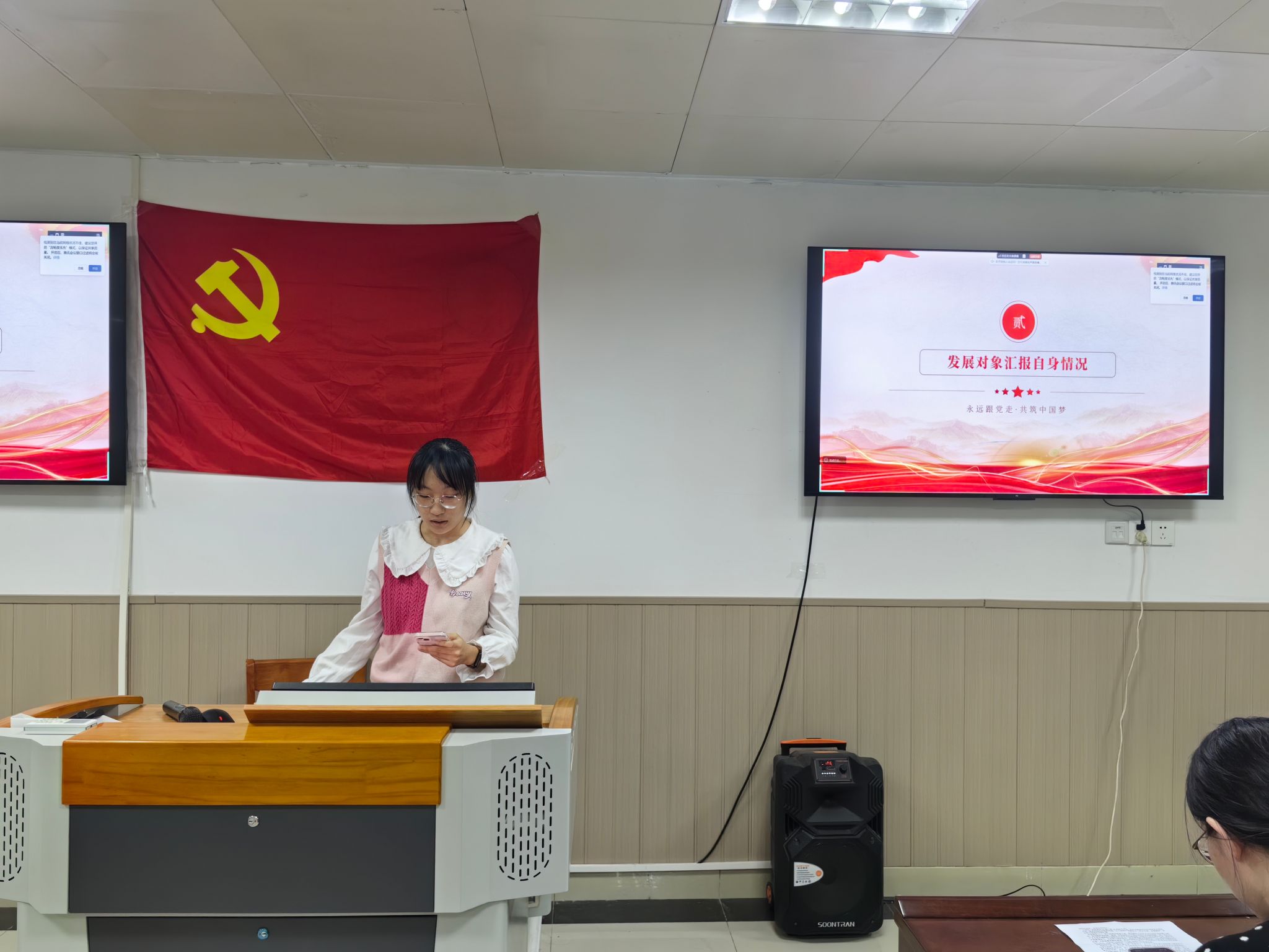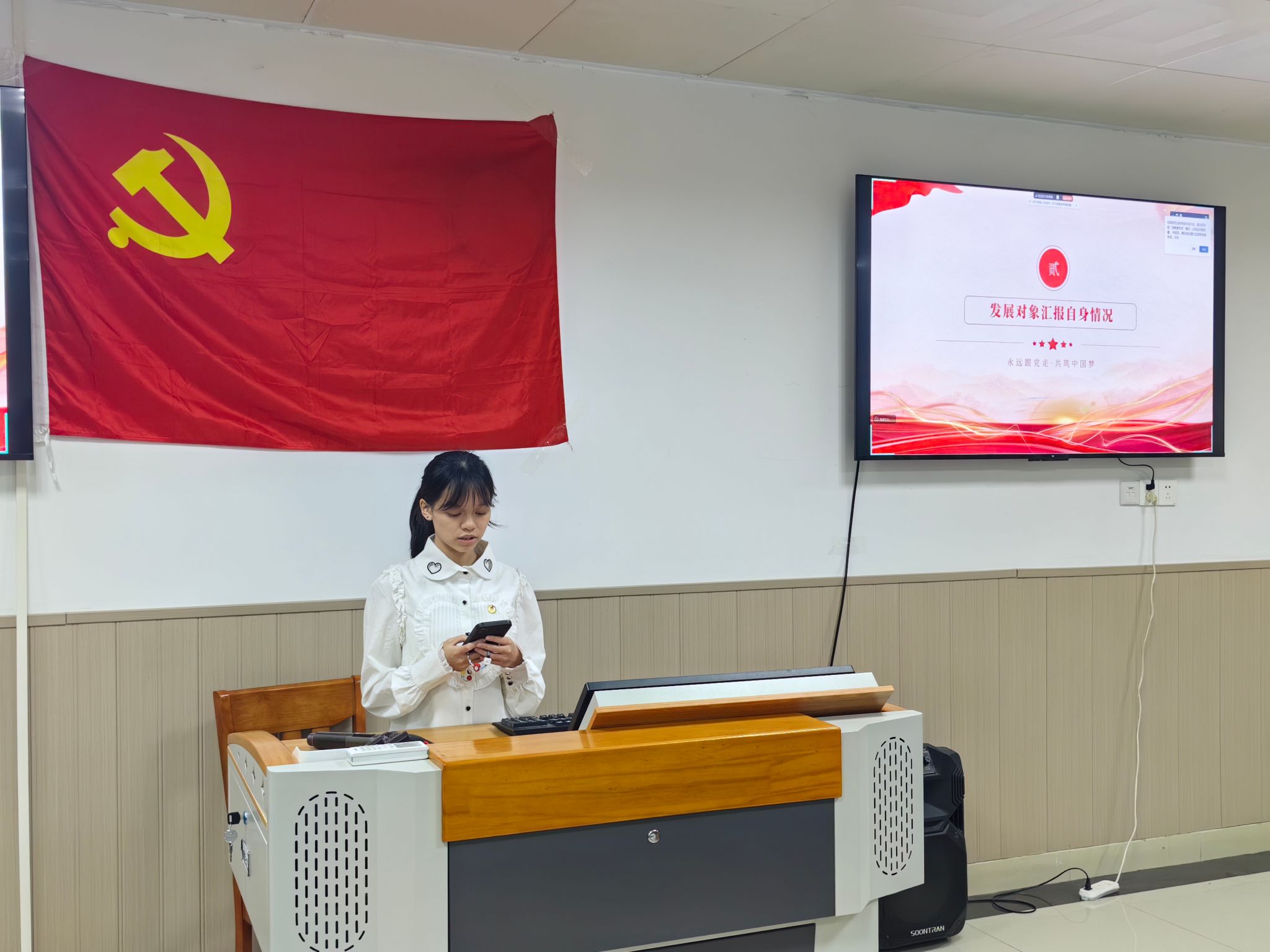 (图为发展对象汇报自我情况)