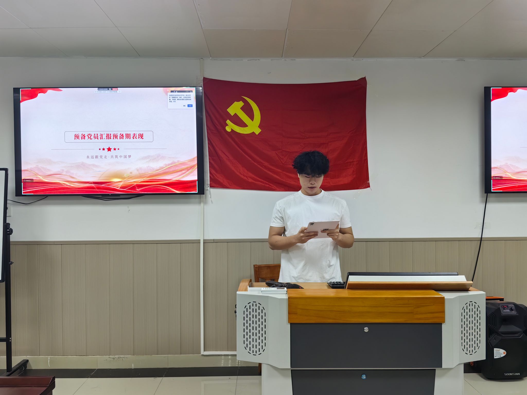 (图为预备党员宣读转正申请)