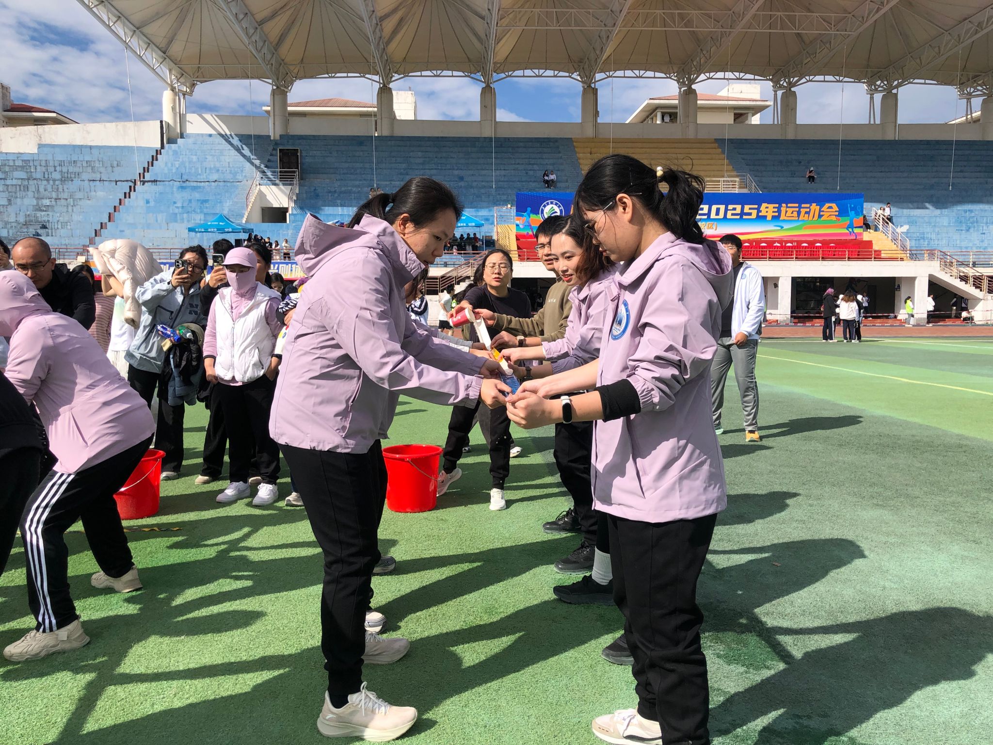 相较于紧张激烈的个人竞技,趣味项目则成为彰显团队智慧与协作精神的欢乐舞台。我院教职工在这些项目中配合默契、妙趣横生,捷报频传。其中,“旋转布条”与“快乐跳绳”两个项目,老师们凭借完美的协作和稳定的发挥,双双将第一名收入囊中。“夹球赛跑”项目获得第二名,“长杆旋风跑”和“飞碟归来”项目均荣获第三名。这些成绩的取得,不仅源自赛前的精心准备与刻苦练习,更得益于比赛中彼此间的信任、鼓励与无缝衔接的战术执行,现场欢笑声与喝彩声不断,将运动会的气氛推向高潮。
