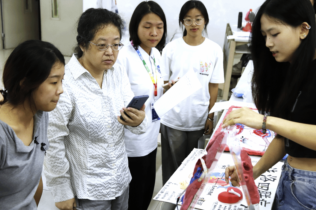 《脉流新生——人体血液循环模型》 以心脏为动力核心,打破传统教学模型的静态局限,通过动态演示立体形象地展示出心血管系统,裴轶劲老师认为该作品颇具创意,并从外观优化方面提出相应建议。
